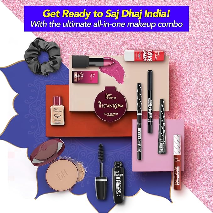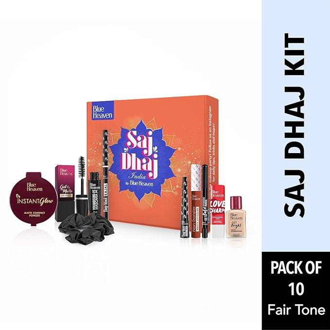 | Product Benefits | All-in-One Collection: The Saj Dhaj Makeup Kit is a carefully curated assortment of makeup essentials, offering a wide range of products to create mesmerizing festive looks., Effortless Beauty for All: Designed with beginners in mind, this kit simplifies the makeup process, allowing anyone to achieve professional-quality results without the fuss., Thoughtful Gifting: Whether for yourself or a loved one, the Saj Dhaj Makeup Kit is the perfect gift that combines practicality and luxury, catering to makeup enthusiasts of all levels. See more |