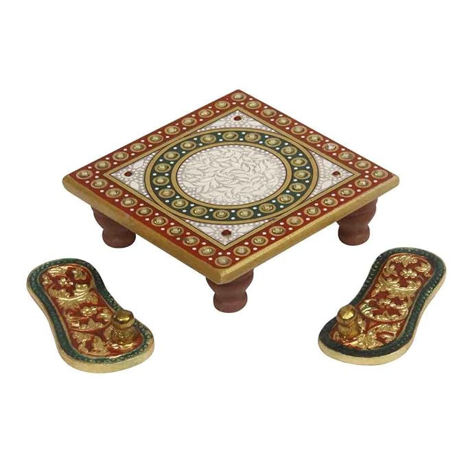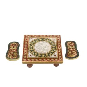 Be the first to review “Handicrafts Paradise Marble Circular Pattern Chowki(4×4 inch) and Meena Work Lakshmi Paduka for Puja Set of 2 Items”