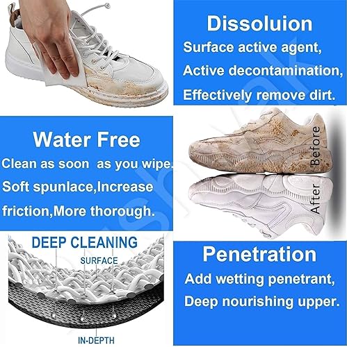 - POWERFUL PREMIUM CLEANING SOLUTION: By using the combination of RO pure water and premium cleaning solution, This shoe wipes can effectively remove different sorts of marks, stains, and dirt that remain on your shoes. 100% skin safe. Shoes cleaner without any harmful chemicals to skin or fabric of shoes. Our sneaker wipes are comprised of a natural formula with a powerful detergent that effectively cleans your shoes and sneakers without removing color.