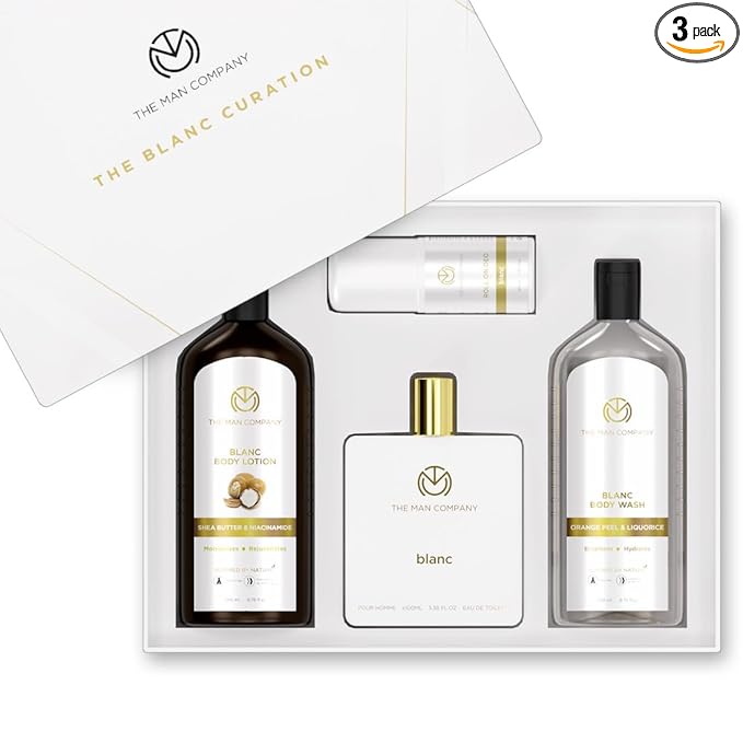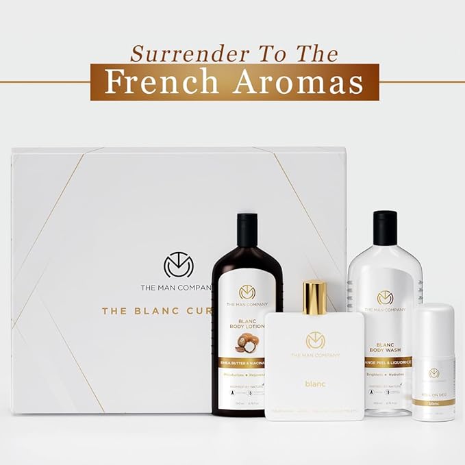 The Man Company Blanc Gift Box for Men with Blanc Perfume, Roll on Deo, Body Lotion & Body Wash | Long-Lasting Fragrance For Men | Moisturizes, Rejuvenates